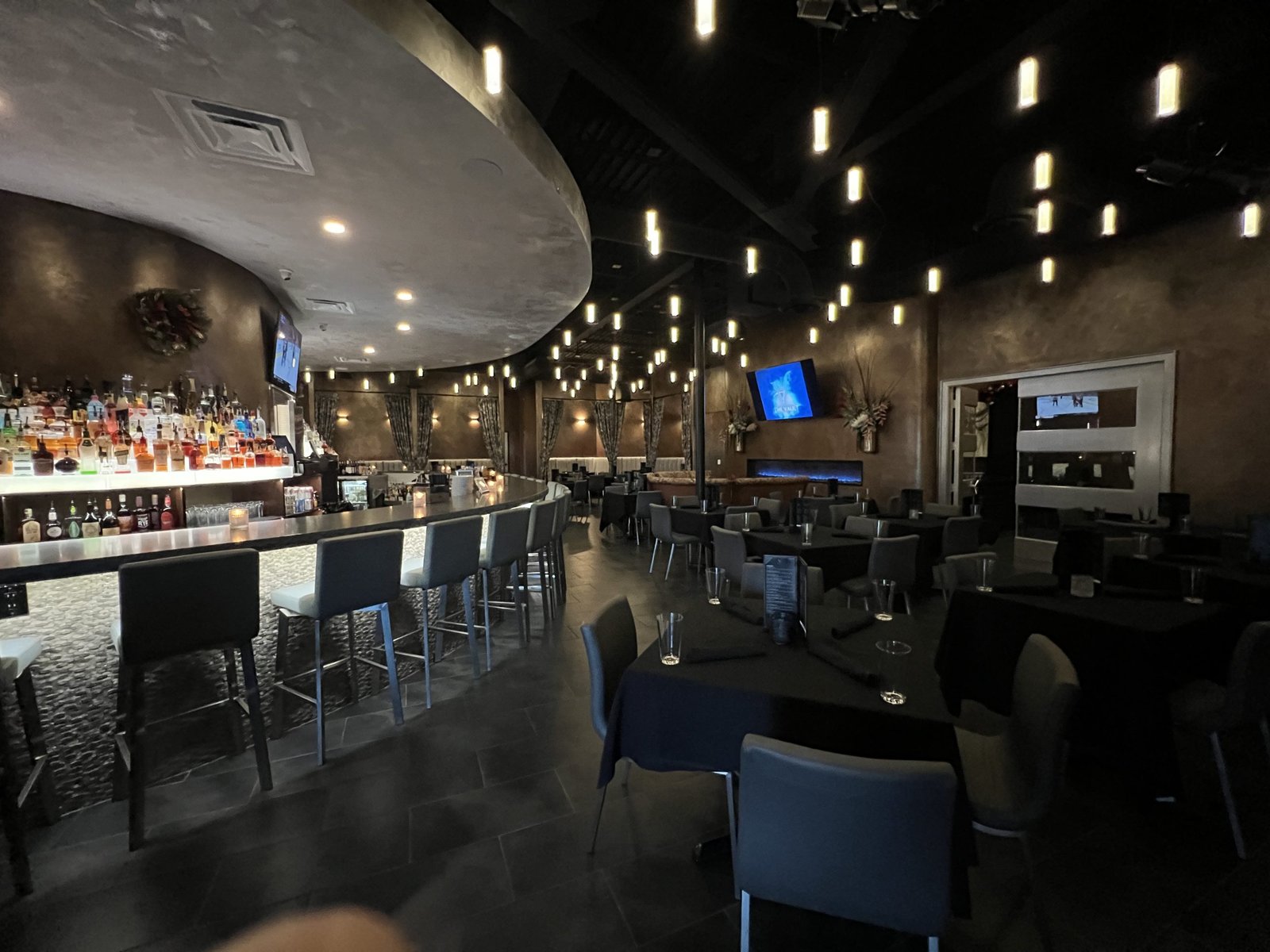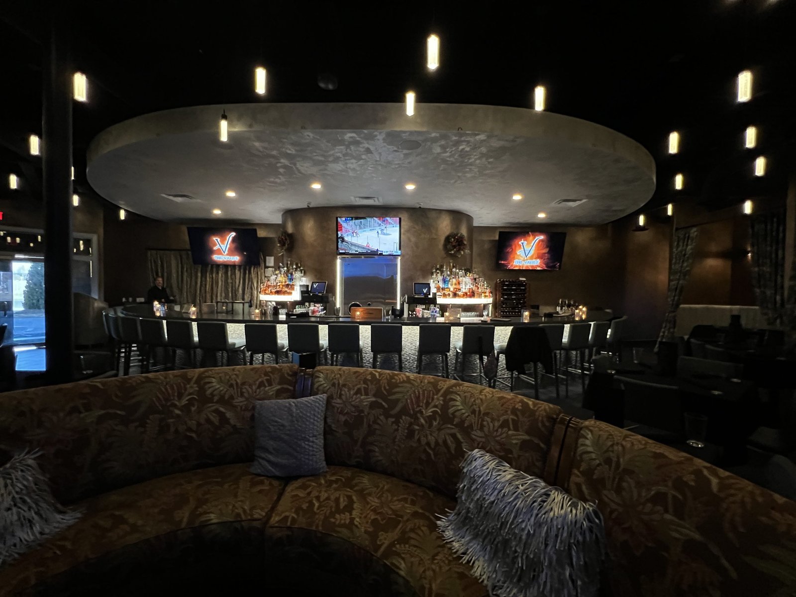 You’ll find mood lighting perfect for date nights and circular, padded booths just begging you to take a load off for an hour or two. The circular booths are ideal for accommodating larger groups.